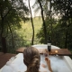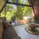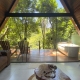Com paredes de vidro temperado, o quarto cria a sensação de estar completamente escondida na floresta.